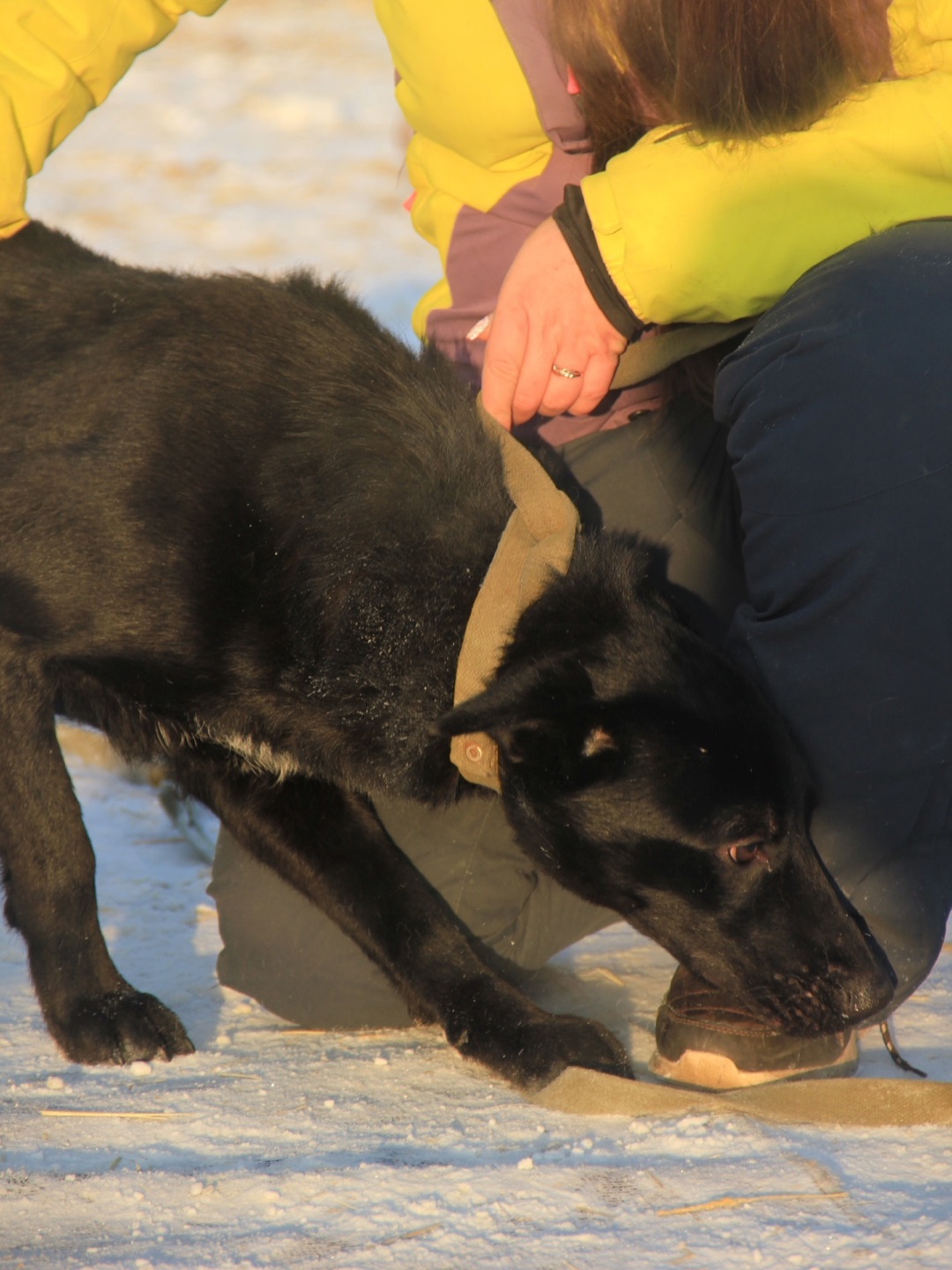 Ходит на поводке достаточно хорошо, но требуется коррекция. Необходимо проявить терпение и ласково объяснять Аксу, что от него требуется.