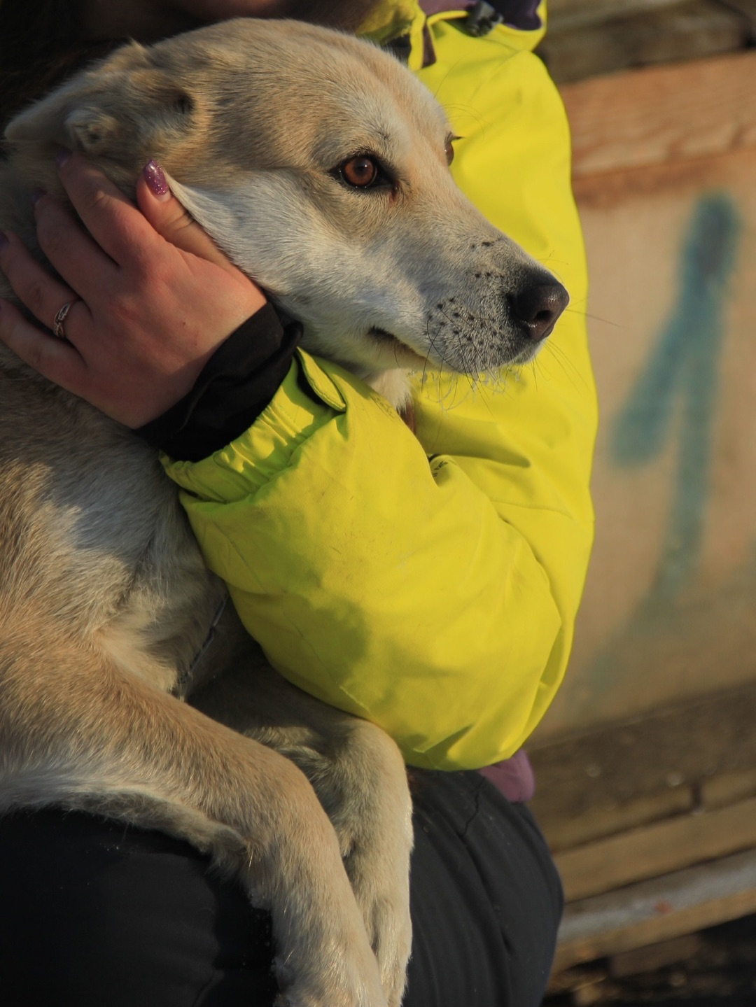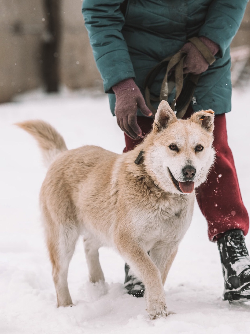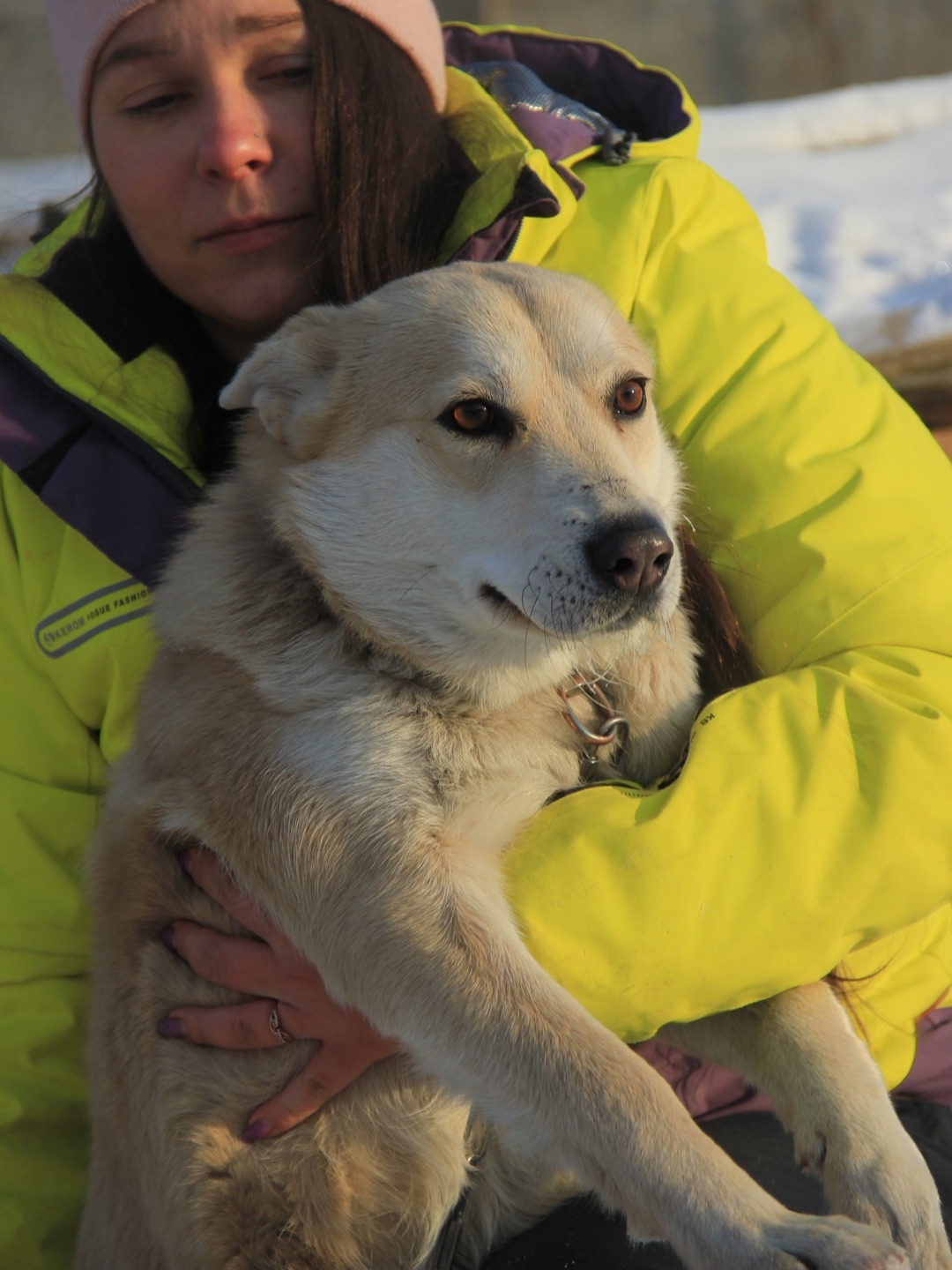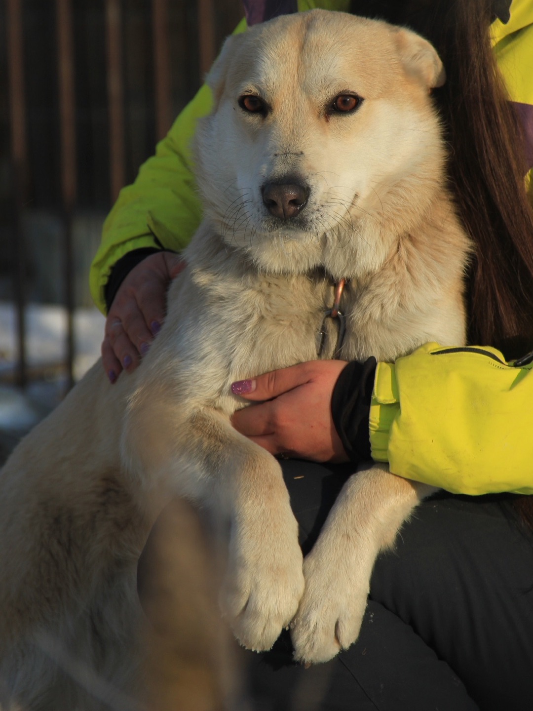 Послушно ходит на поводке, не баламутка. Возможно, ранее жила в квартире.