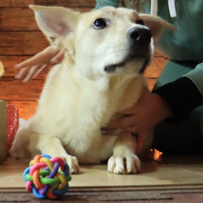 Среднего размера собачка фантастического молочного окраса! Красавица и умница)