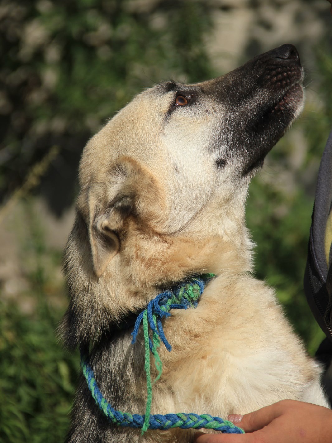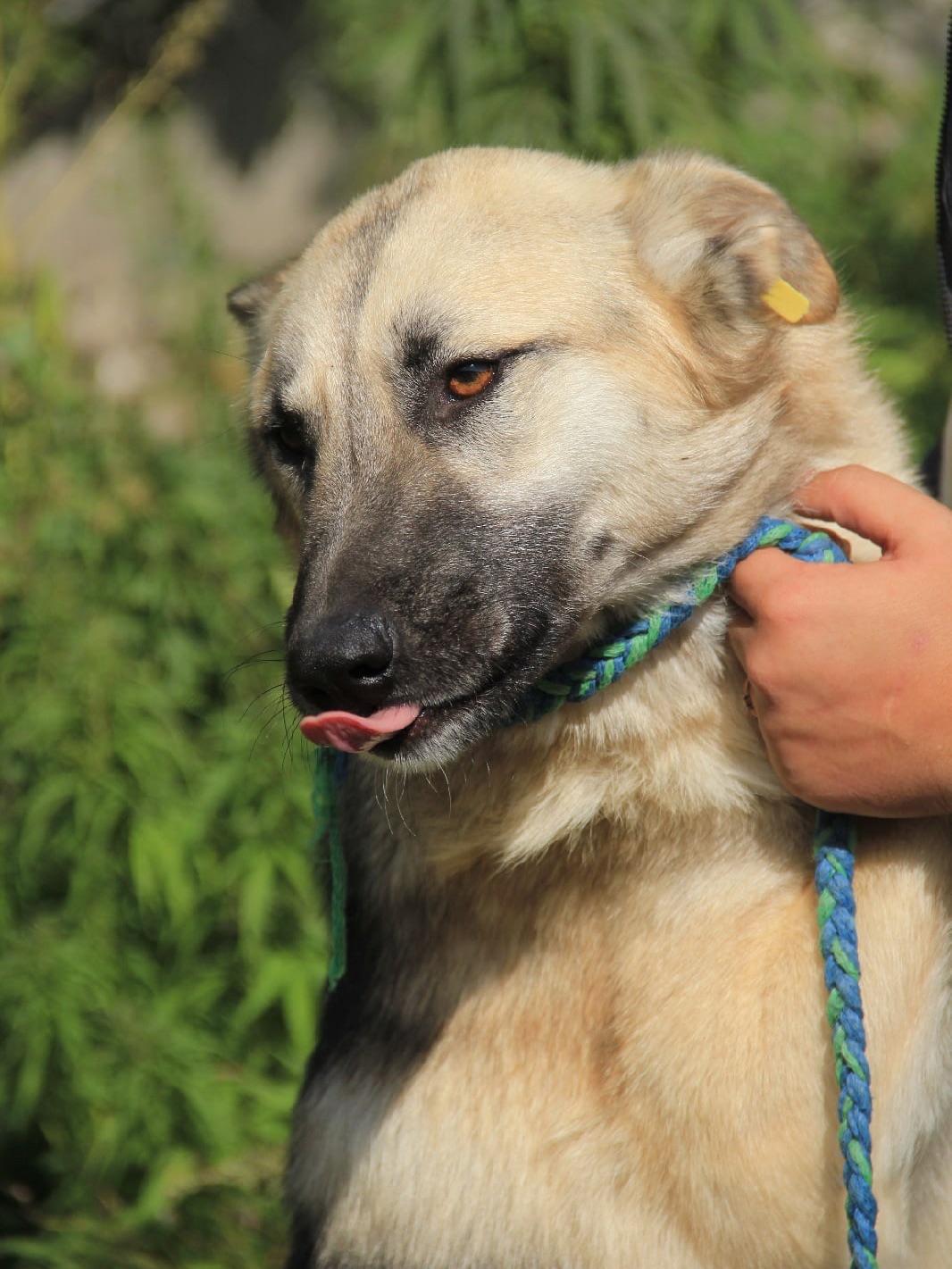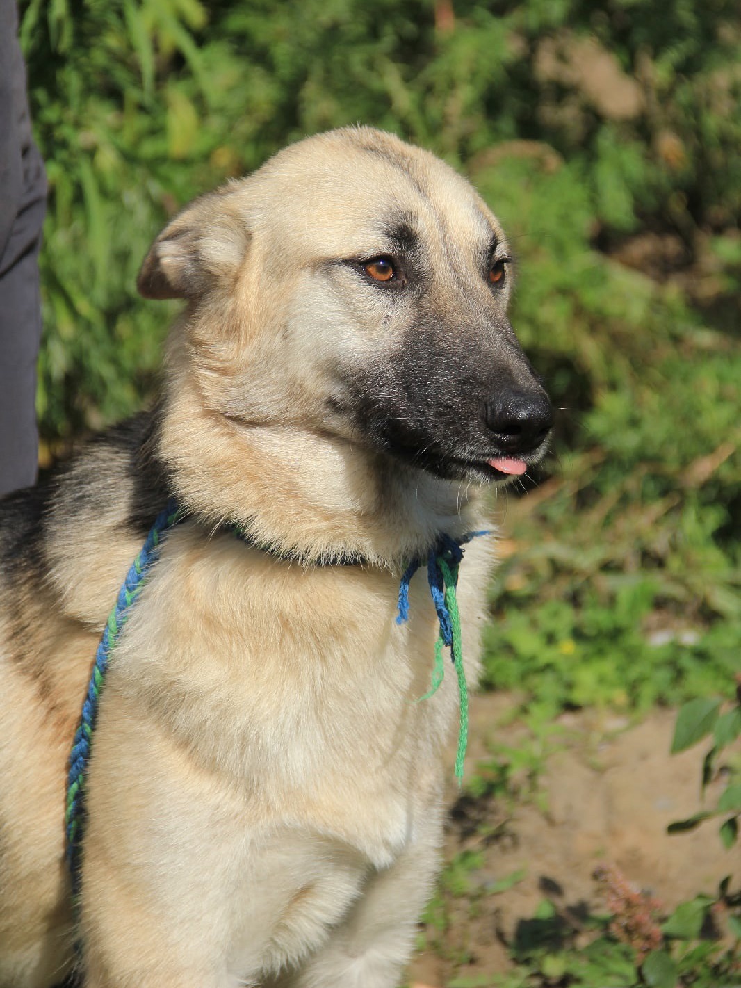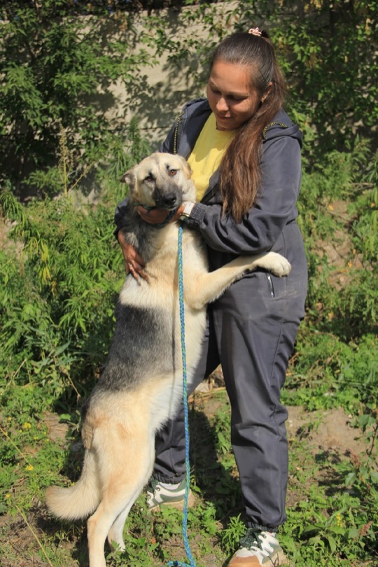 Пока плохо знаком с амуницией. Не понимает, зачем собакам нужен поводок. При небольших усилиях и терпении можно обучить.