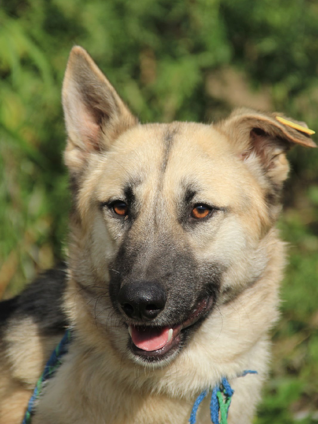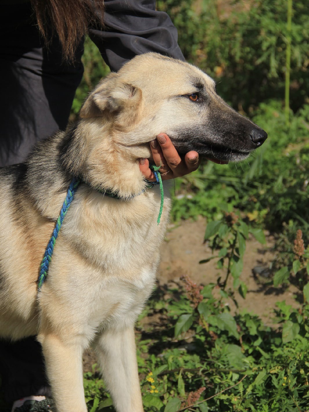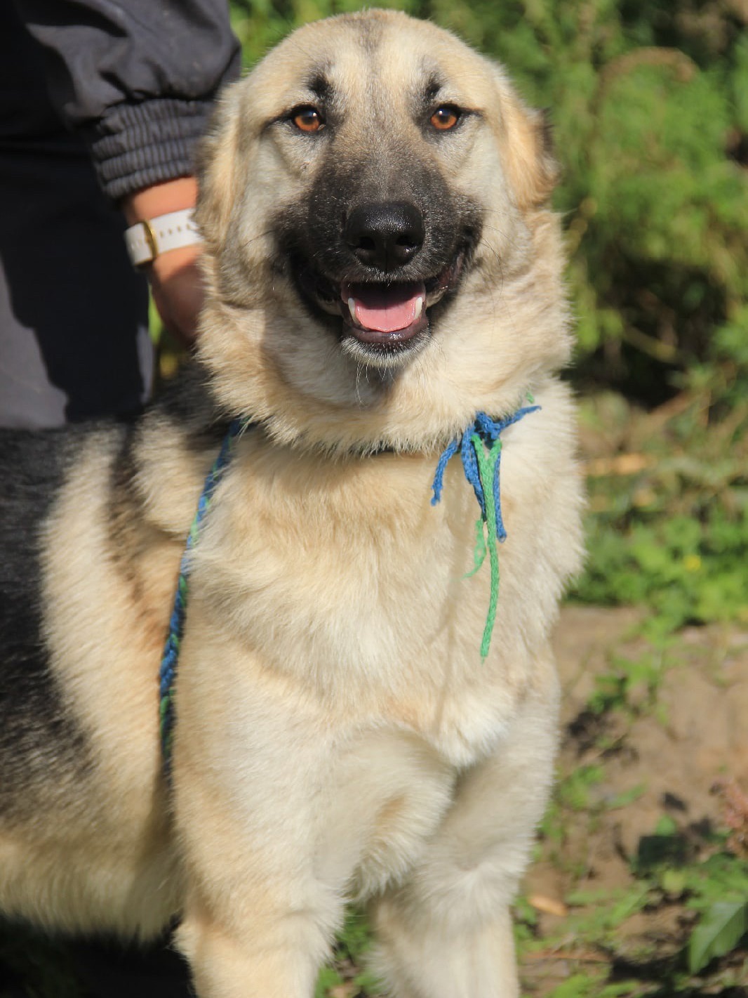 Пока плохо знаком с амуницией. Не понимает, зачем собакам нужен поводок. При небольших усилиях и терпении можно обучить.