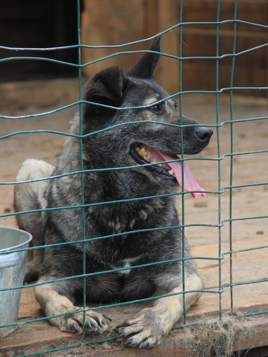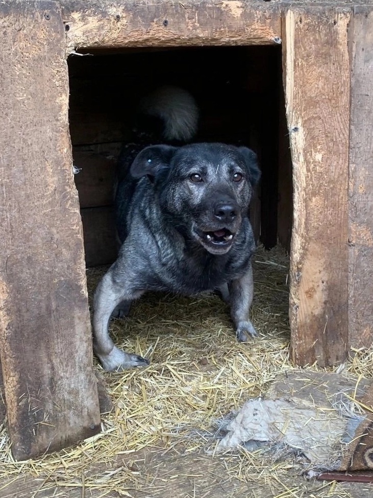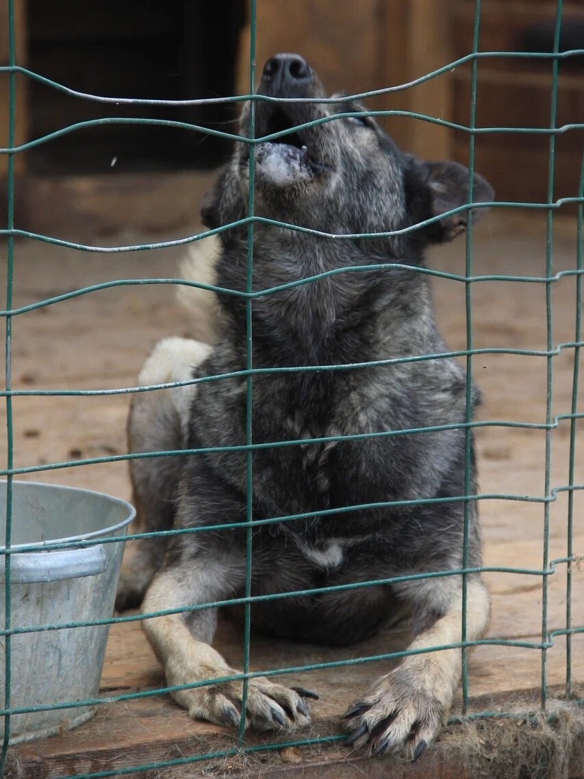 В вольере лает и лай его грозный, но как только человек входит в вольер, Ральф предпочитает ретироваться в будку и ругаться с безопасного расстояния.