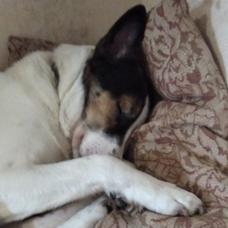 Небольшая молодая собачка, которая раньше явно жила дома, но, по каким-то причинам очутилась на улице. Гиперактивная собака, которой постоянно нужно человеческое внимание, и регулярный выгул.