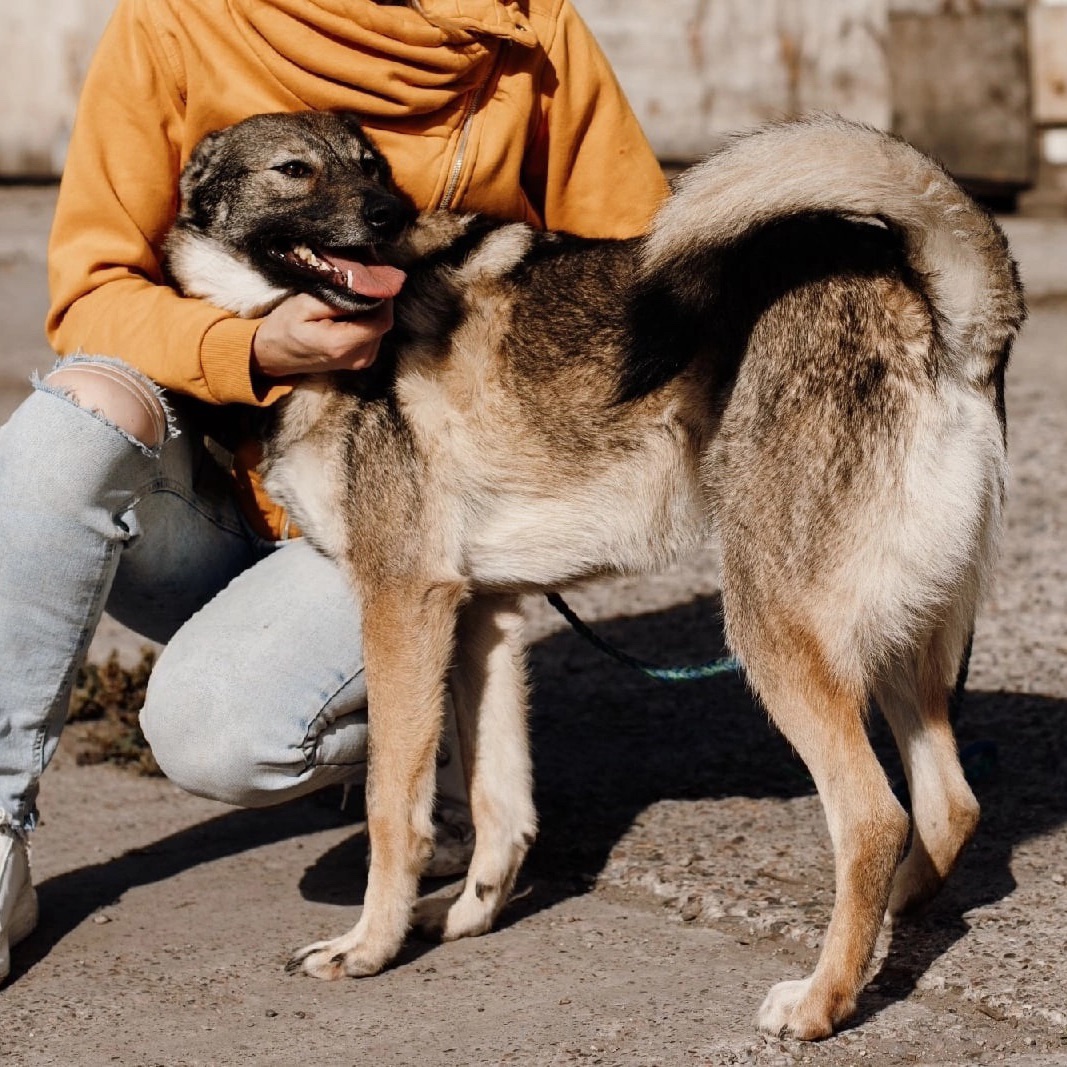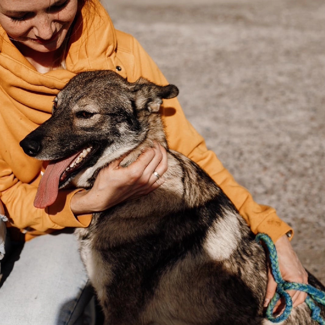 Собачкой она оказалась общительной. Любит людей, тянется за лаской.