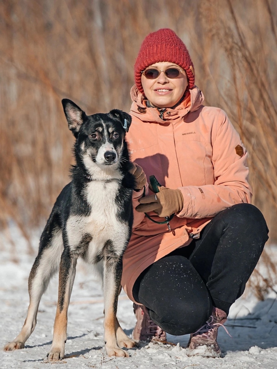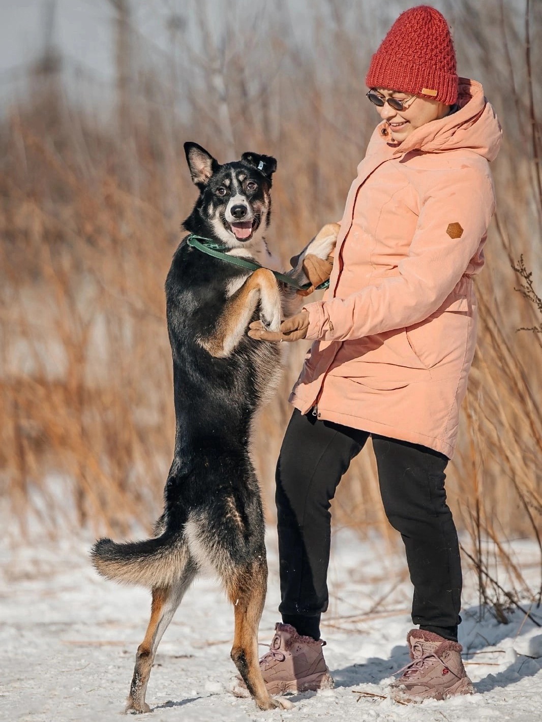 Как любая молодая собака, Адуша обожает прогулки на свежем воздухе, неплохо ходит на поводке, хотя на возбуждении может потянуть, обожает угощение и обощение с человеком.
