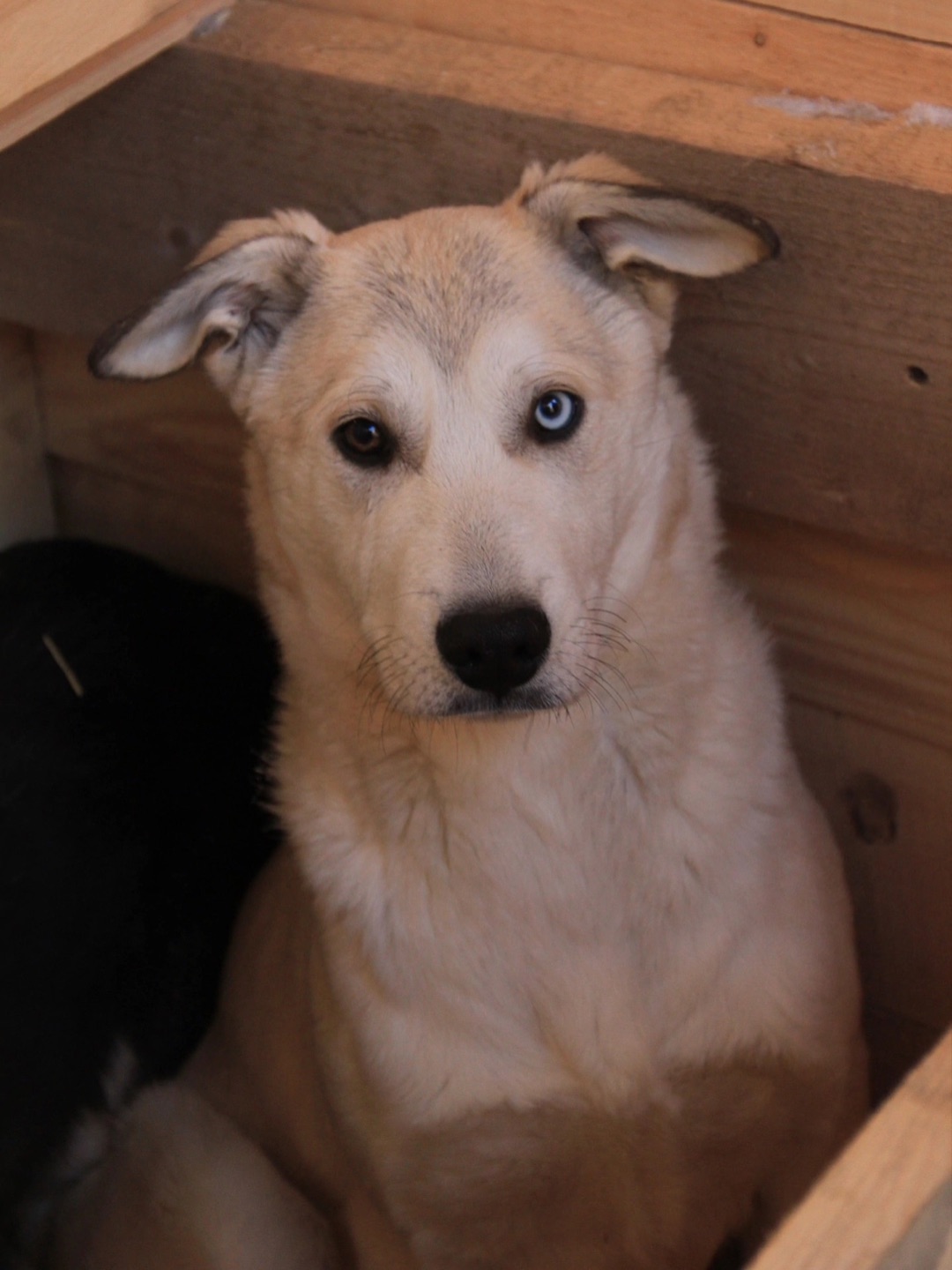 Ибис проживает в вольере с братьями и сестрами. Он самый спокойный из них и частенько более бойкие щенки Ибиса пытаются обижать. В конфликты Ибис не вступает, себя защищать не умеет. Он печально уходит и грустит.