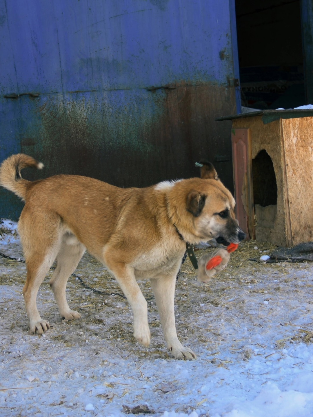 В глазах Коржика сияет неиссякаемый задор. Он готов сутками играть и веселиться. С удовольствием играет с мягкими игрушками. С восторгом принимает их в подарок от гостей приюта. Правда надолго игрушек не хватает. У Коржика сильные челюсти, разгрызает плюшевых зайчиков в мгновение ока.