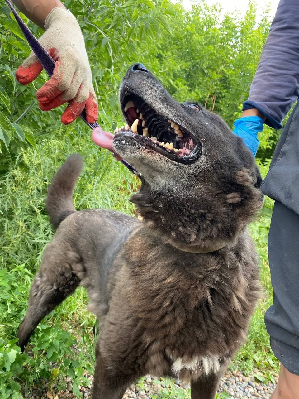 Пёс взрослый, серьезный, самодостаточный. С Мишей не забалуешь. С людьми, кого считает своими, он ласковый булка. Чужаков отгоняет громогласным лаем. Может куснуть особо настырных.