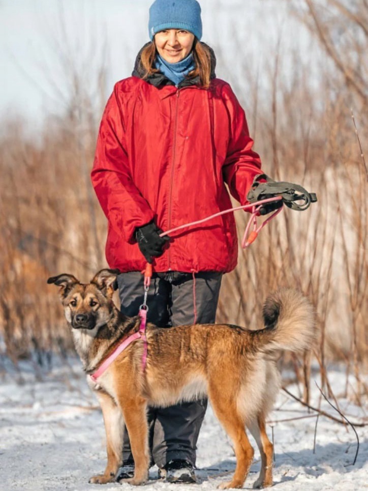 Найда приучена к ношению амуниции. На прогулках ладит с сородичами, с удовольствием играет, но по характеру не лидер.